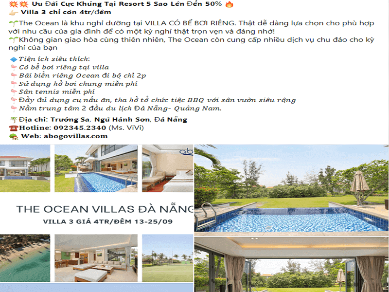 Để mở rộng tên tuổi thương hiệu, bạn cần giới thiệu ngay tên khách sạn và các ưu điểm vượt trội so với đối thủ, dịch vụ mà khách sạn của bạn cung cấp là gì. Tiếp theo, cần đưa vào phương thức liên hệ như số điện thoại, địa chỉ, email,… để khách hàng dễ dàng lựa chọn để tìm kiếm hơn. Ví dụ như: